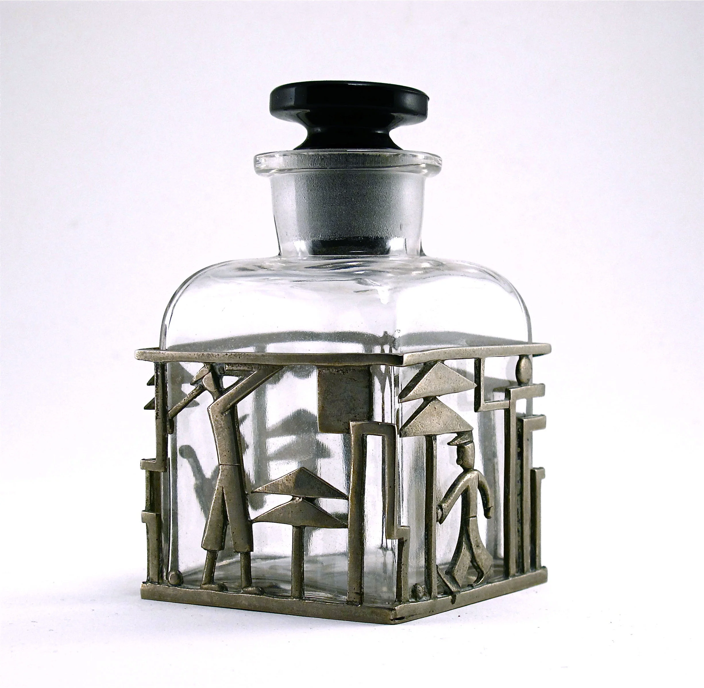 Commercial bottles by various noted designers accounted for half of the evening’s offerings and created much of the excitement. The exceptional figural bottle “Le Demon d’Amour” by French sculptor de Vaudrey realized $12,000; a Caron “fountain” used for dispening perfume in the Caron store sold for $8,400; and a 1930s Jean Desprez “Escarmouche” dagger bottle unwrapped for the auction brought $9,600. Baccarat’s “Nemora” for Roger et Galle sold for $10,800, and the J. Viard “Suspira de Granada” for Myrugia ended at $6,000. Of particular interest was the 1950s Lancome presentation for “Magie” and “Tresor” of arrow-shape bottles in a quiver given as a souvenir at a French charity ball, which closed at $37,200. A renewed interest in early 20th century bottles by Rene Lalique saw prices soar with a 1912 Burman “La Siren” bottle bringing $13,200, a Maison Lalique “Oreilles Lizards” reaching $22,800, and a 1923 D’Heraud “La Phalene” commanding $36,000.